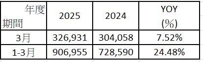 ▲ 美喆-KY 2025年3月合併營收簡表(單位:新台幣仟元;%)