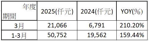 興櫃再生醫療公司和迅(6986)公布2025年3月營收為新台幣2,107萬元,較上月營收1,722萬元增加22%,較去年同期營收679萬元成長210%,改寫興櫃以來(歷年)同期單月營收新高的成績。累計2025年1至3月累計營收為新台幣5,075萬元,較去年同期累計營收1,956萬元成長159%,第一季在農曆春節、工作天數較少影響下,整體營運仍維持成長,繳出年增率大躍進的亮眼好成績!