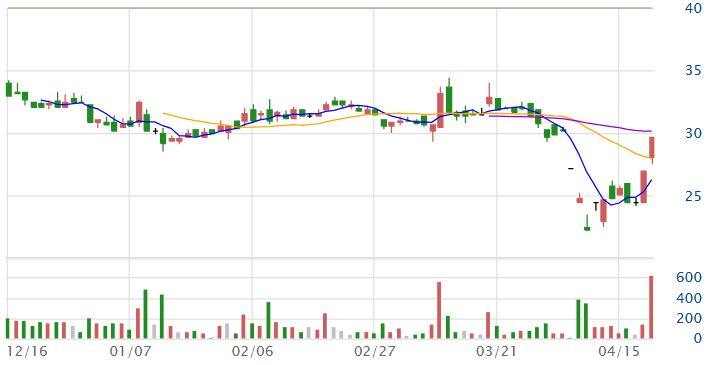 不過,卻有一檔電阻製造商天二科技(6834),雖沒有實施庫藏股自救,卻在今(21)日強勢亮燈,攻上漲停。天二科技早盤跳空開高開在28.10元,開盤不到半小時就以29.70元漲停鎖死,漲幅10%,一舉站上月線,並朝季線邁進,目前盤中交易量為626張。