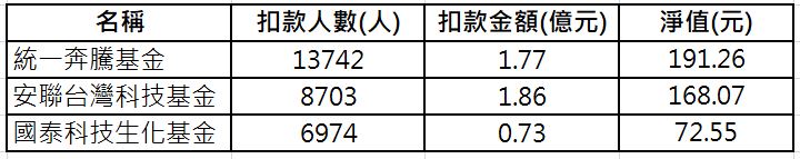 ▲ 主動式台股科技型基金3月定期定額人數前三名(資料來源:投信投顧公會、晨星。定期定額統計至2025/3/31,最新淨值為2025/4/22。)