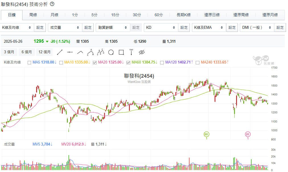 從技術面觀察,聯發科近期股價走勢相對弱勢,且成交量持續萎縮。年線與半年線都將於兩周後開始逐漸扣高,使長期走勢面臨壓力。儘管市場被AI消息炒熱,但股價無法有效反映利多,反而出現「利多不漲」的現象,是投資人應特別警覺的訊號。