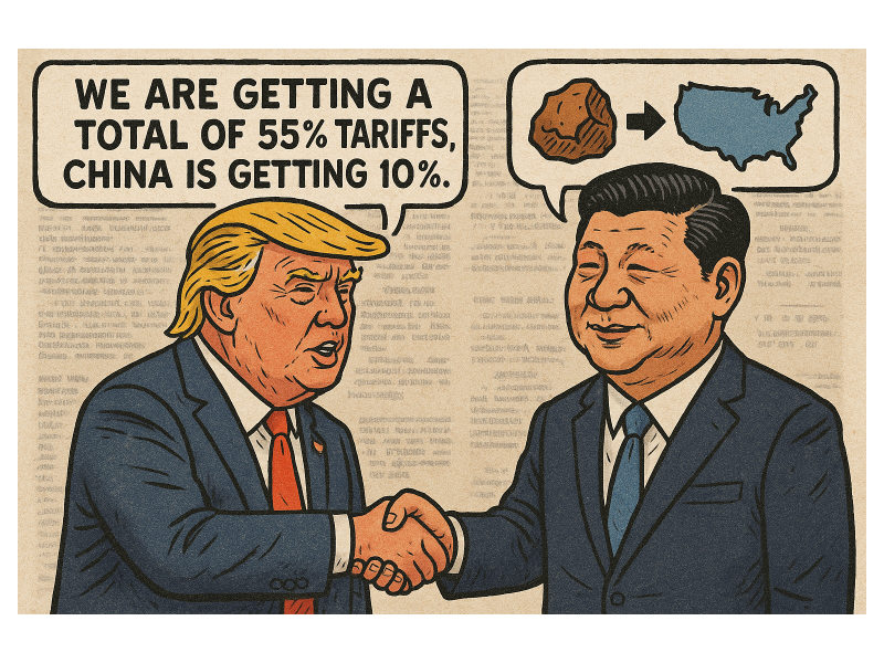 美國總統川普於11日在真實社群「Truth Social」宣布,美中雙方的貿易協議已經完成,中國供應稀土與磁鐵,美國則允許中國學生前往美國讀書。在關稅部分,川普寫道:「我們與中國的協議已達成,最終需經習近平主席和我批准。所有磁鐵及必要稀土元素將由中國預先供應,同樣,我們將向中國提供雙方已達成的協議,包括中國學生使用我們大學的資源(我一直對此非常滿意!)。美國將對中國商品徵收55%關稅,而中國對美國徵收10%,雙方關係非常好!感謝您對此事的關注!」