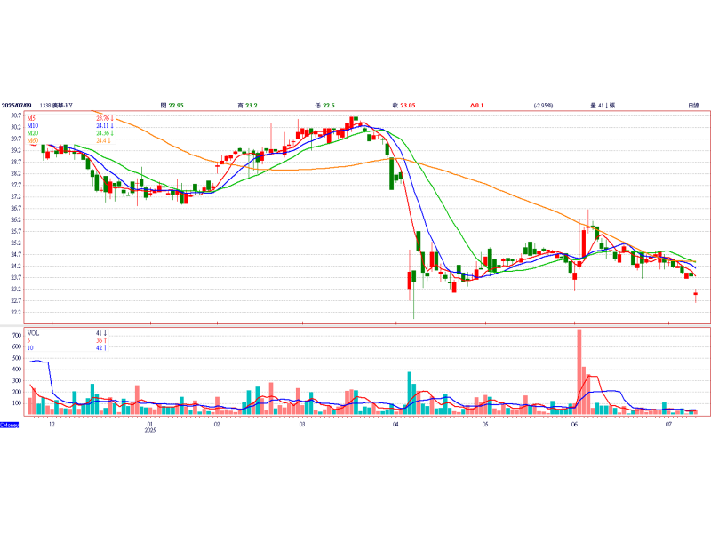 汽車OEM廠廣華-KY(1338)今日公佈114年6月合併營收為新台幣4.62億元,較上月營收增加15.1%、較去年同期增加12.2%;114年第二季合併營收為新台幣12.23億元,較今年第一季減少5.8%;累計114年1至6月合併營收為新台幣25.2億元,較去年同期小幅增加1.29%。