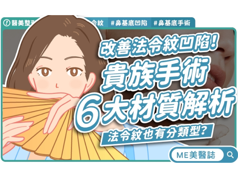 從鼻翼延伸至嘴角的兩道法令紋,是臉部老化的明顯特徵,近年來「貴族手術」的盛行,正代表了大眾對於改善老態的追求,這項又稱為「鼻基底增高術」的整形療程,主要是針對鼻翼兩側凹陷的法令紋問題,藉由植入適當材料,填補鼻唇溝凹陷,改善臉部的立體輪廓。跟著美醫誌來了解法令紋成因,以及貴族手術的材料選擇吧!