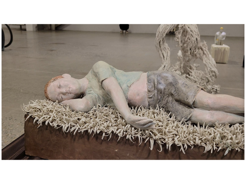 於藝畫廊(V’Art Space)展出的吳瓊作品,以「吳瓊式孩童」獨特語彙──微閉雙眼、仰望天際的神情──喚起觀者心中對童年的純真記憶與渴望。這份情感共鳴也讓他深受名人與國際藏家青睞。歌手蕭敬騰擁有其雕塑作品,吳瓊筆下的孩童形象溫柔動人,眼睛微閉、嘴角上揚、臉龐仰望天空,彷彿正沉浸在一場天真的幻想裡。他所創作的「吳瓊式童年」作品,以卡通式的語彙構築畫面,卻蘊含著成人對純真記憶的深刻體會與情感連結,讓觀者仿佛重新回到那段無憂無慮、充滿想像力的年歲。