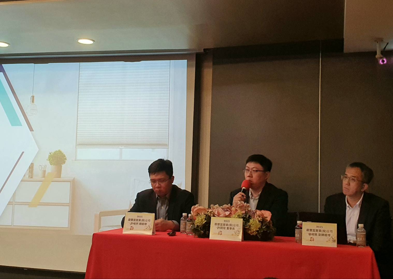 主圖圖說:慶豐富舉辦法說會,董事長許閔琁(圖中) 、總經理許竣然(圖左)及副總經理張峻銘(圖右)共同合影。