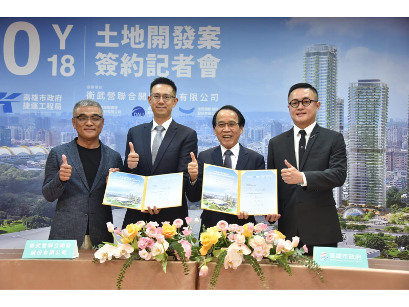 由仲量聯行協助高雄市政府辦理「高雄捷運橘線O10/Y18衛武營站土地開發案」,29日於高雄市政府舉辦簽約典禮,此為高雄捷運開發首案捷運開發案,規劃打造同時結合藝術、生活、TOD的藝文生活園區。