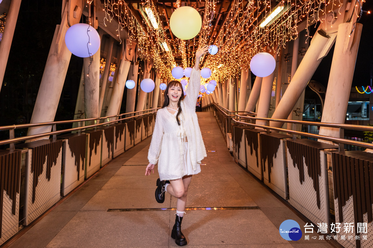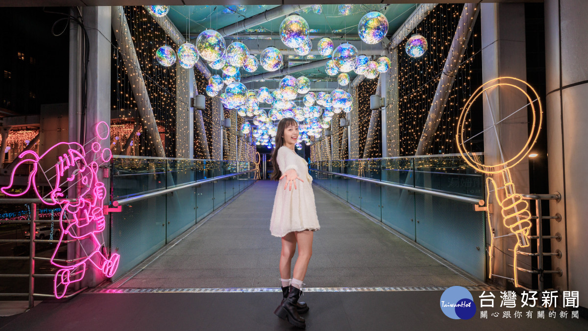 縣民大道公車站旁天橋的「歡樂童心泡泡」以七彩霓虹彩球交織懸掛,營造泡泡般的童趣場景;新站路天橋的「時光膠囊」透過科技光影延伸感,引領民眾展開奇妙的時空穿越旅程;板橋車站B1連通道的「LINE FRIENDS星光大道」則結合LINE FRIENDS可愛角色與遊樂設施燈飾,打造充滿歡樂趣味的節慶氛圍。