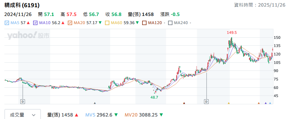 Google推出最新AI應用軟體Gemini 3大獲好評,市場資金進駐Google相關供應鏈,其中PCB廠精成科(6191)成功打入Google TPU(張量處理器)供應鏈,股價飆漲。