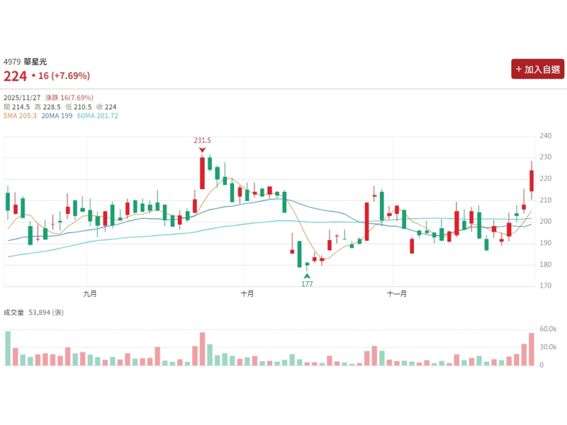 ▲圖片來源:CMoney 4979 華星光 K線圖