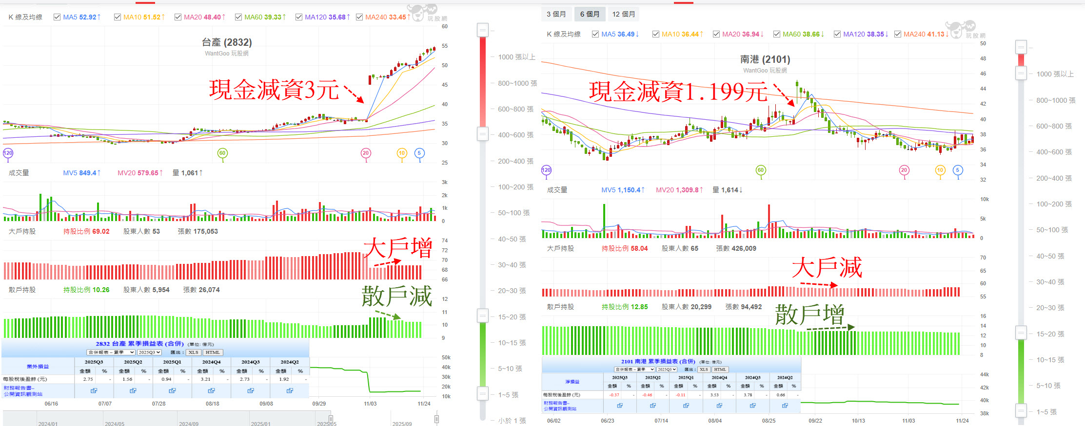 台產是減資過後籌碼流入大戶手上,南港是減資過後籌碼流入散戶手上