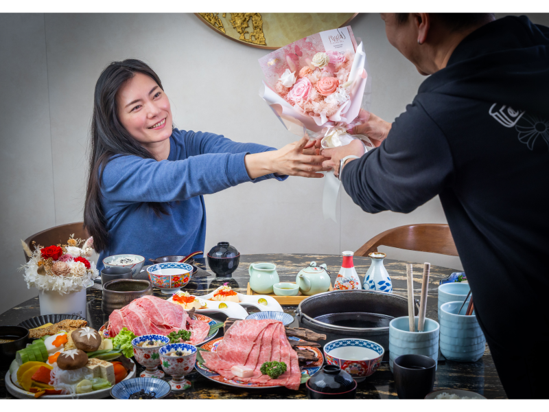代官山花苑攜手「橋山·壽喜燒」與「二本松涮涮屋」,推出情人節「聯名限定套餐」,每套餐點都配有職人手作、客製的永生花束,讓寵愛的儀式感,在用餐間悄然綻放,以花束服務升級全新餐飲體驗。
