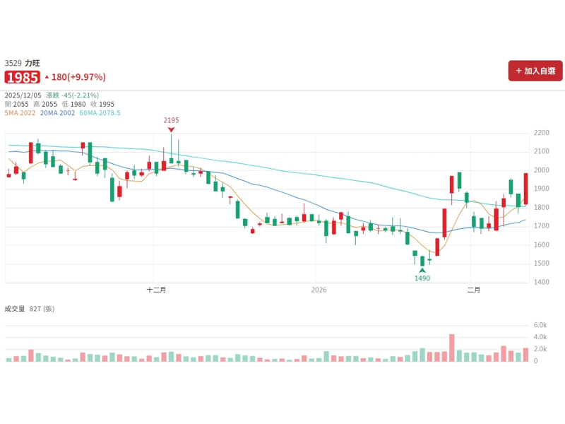 ▲圖片來源:CMoney 3529 力旺 K線圖