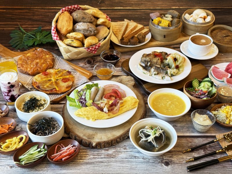 熱食區同樣精彩,從火侯精準、口感滑嫩的「精緻蒸蛋」,到香氣四溢的「鹽烤鯖魚」與鮮嫩多汁的「義式香料雞腿」,每一道都展現出星級飯店的烹調水準。針對追求健康的旅客,飯店特別擴大「舒活蔬食區」,提供多款在地有機時蔬,清爽無負擔。甜點部分則不容錯過粵式經典「港式蛋白燉奶」,質地絲滑、入口即化,為這場美食饗宴畫下完美句點。