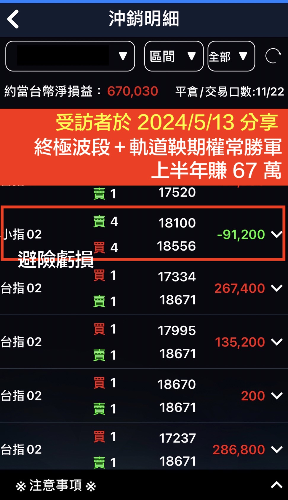 【最終成果】(會員原話) 「去年 5 月的波段,將前兩筆虧損打消,學費早就賺回來了,更別說我以後還會用這個策略到很久以後,未來要回收好幾倍,也不是不可能。」