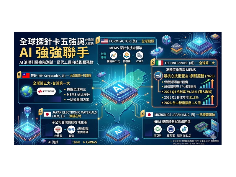 探針卡台灣廠商有哪些與世界合作?AI 浪潮引爆高階測試需求 全球五大探針卡巨頭出列