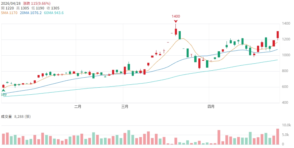 2月EPS 16.22元太驚人!宜鼎(5289)記憶體 邊緣AI雙箭齊發 漲停飆上1305元