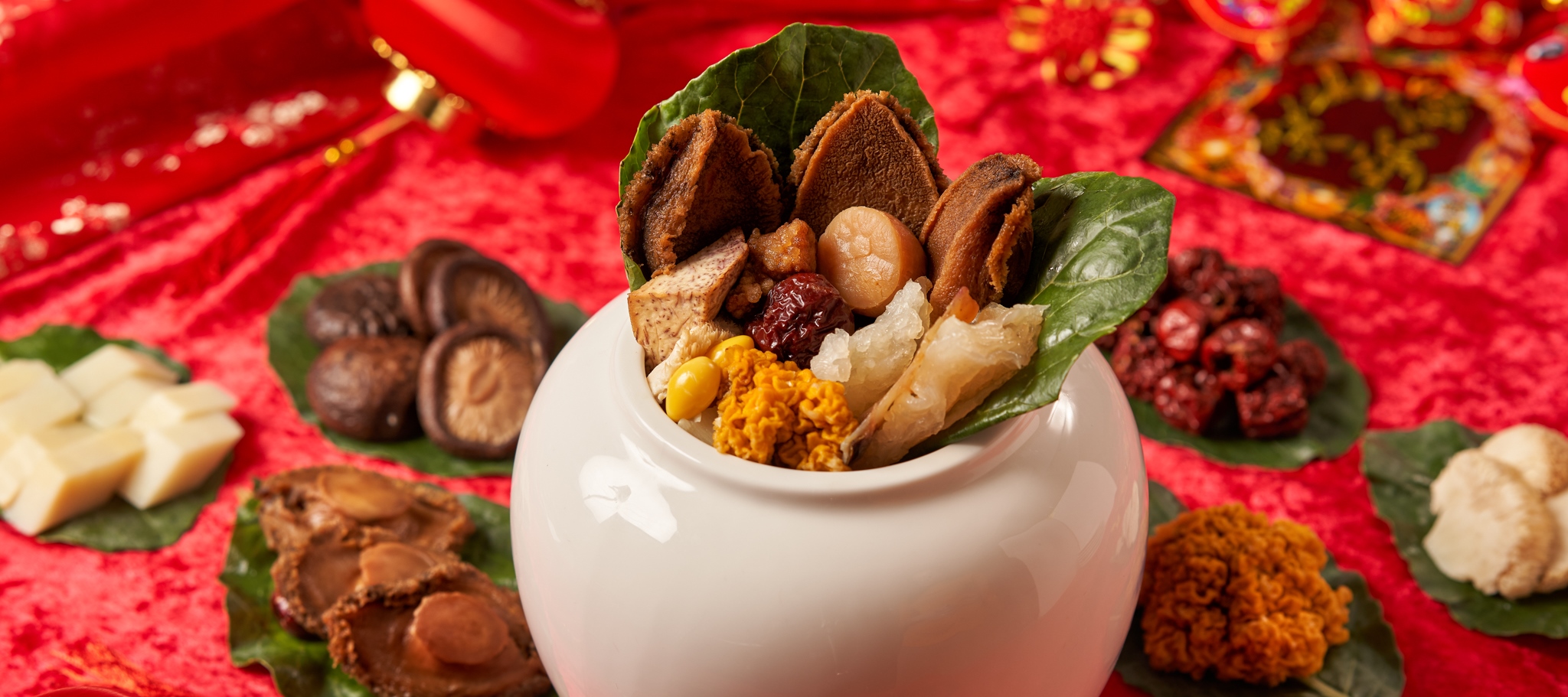 歲末將近,不少飯店和餐飲業者推出圍爐宴與年菜外帶商品,讓消費者不論是能在家裡或是出外都能品嚐星級年菜。台北新板希爾頓酒店今年便推出了「富貴滿堂佛跳牆」,以各種食材的原汁原湯為底,鮑魚、烏蔘、花膠、蹄筋、黃耳、腰果等十六種食材入菜,加上冰糖、八角、蔥、薑等輔料,經過兩小時的文火燉煮,湯頭濃郁香醇、吃來軟嫩鮮美。