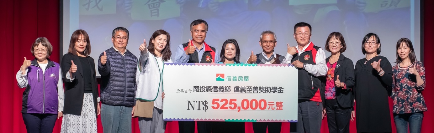 當年921地震使得許多偏鄉弱勢家庭更為無助,造成部份學生無心亦無力繼續升學,為了讓受災家庭的學童們能夠安心銜接學業,信義房屋於2000年成立「信義至善獎助學金」,更於頒獎同時,帶領信義志工到信義鄉參與頒獎典禮。