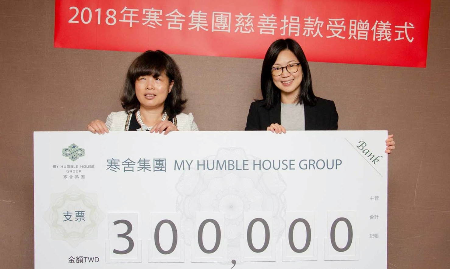 在各界熱烈參與之下,寒舍集團「2018年耶誕節慈善活動」共為中華民國身心障礙者藝文推廣協會募得總金額30萬元,由寒舍餐旅副總經理閔桂鈴代表集團捐贈,以行動參與凝聚各界愛心,守護每位身心障礙藝術家天賦才華,讓溫暖關懷為耶誕節更添恩典意義。