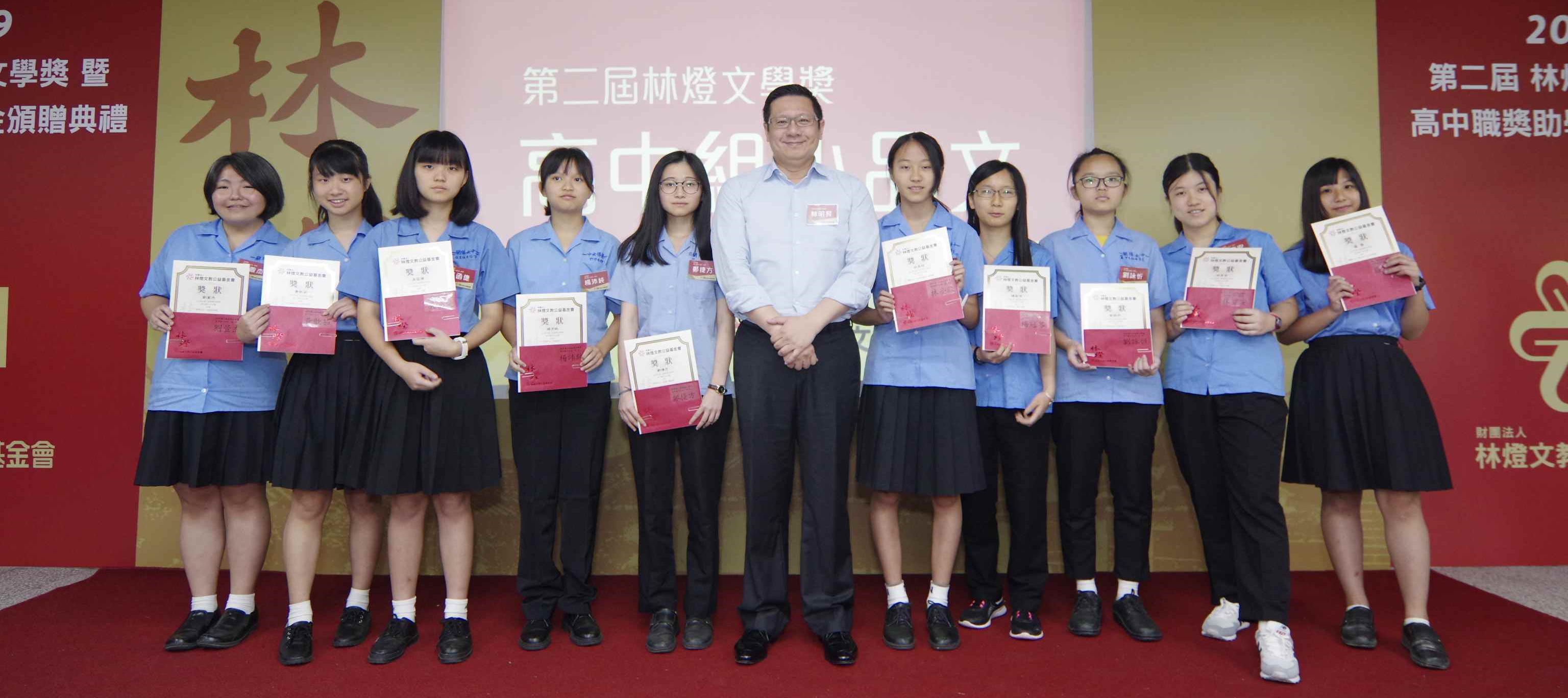 【理財周刊記者顏瓊真報導】林燈文教公益基金會舉辦「第二屆林燈文學獎暨高中職獎助學金頒贈典禮」,勉勵文學獎和高中職獎學金得獎者。百餘位獲獎學生以及家長、校長等齊聚典禮現場,一起分享榮耀!