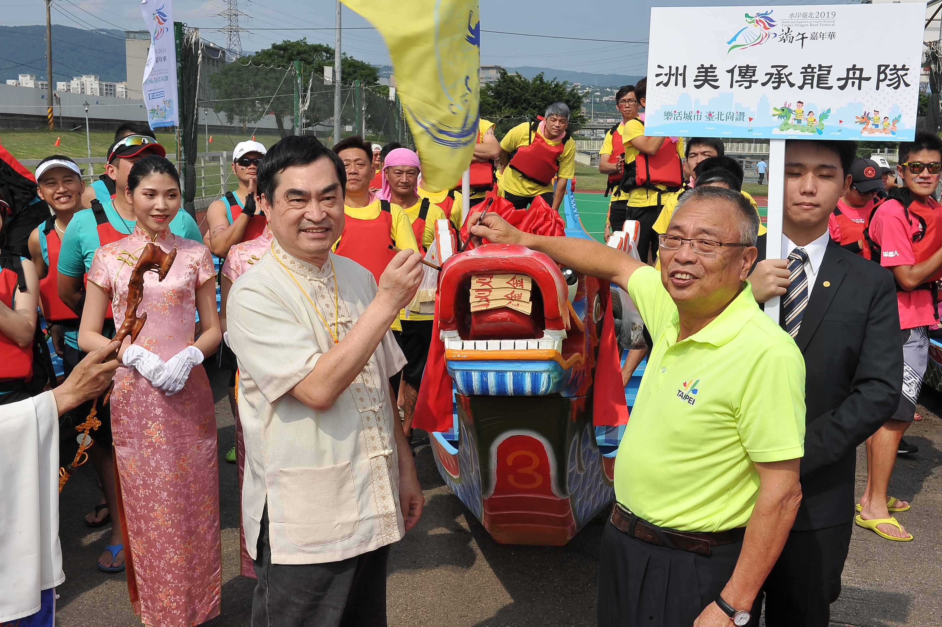 本活動由臺北市副市長鄧家基擔任主祭官進行傳統請神、點睛及祭江儀式,同時為促進城市外交與文化交流,也邀請到索羅門群島大使館、尼加拉瓜大使館、帛琉共和國大使館、貝里斯大使館、聖露西亞大使館等在臺代表及眷屬參與擔任陪祭官,與臺北市政府體育局副局長蔡培林偕同與會貴賓共同虔誠上香敬獻,祈求天地神祇保佑今年國際龍舟錦標賽順利平安,端午嘉年華系列活動圓滿成功。