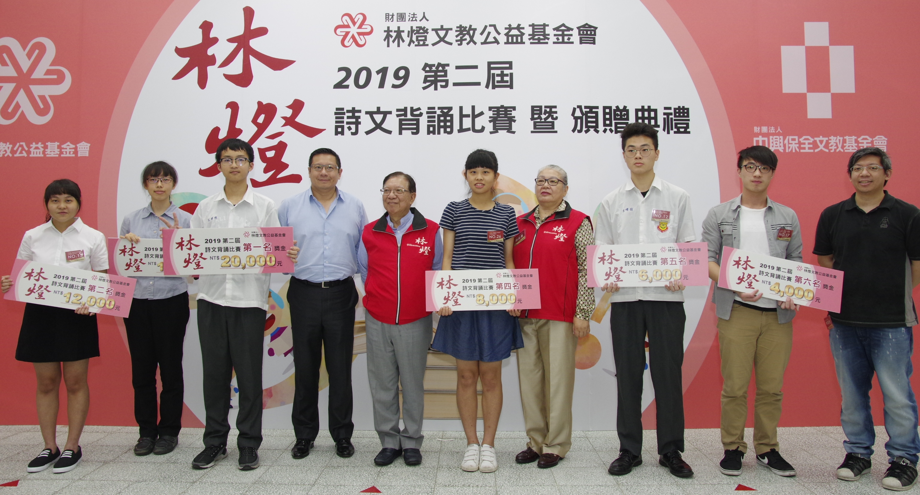 背誦比賽進行決賽暨頒獎典禮,中保集團總裁林孝信、副總裁林明昇、中保副董事長林建涵以及林燈文教公益基金會執行長林純美特別出席頒獎、勉勵參賽選手。