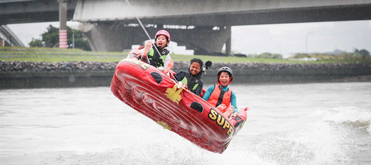 二:「全家輕鬆衝」專案,內容包含適合三五好友、情侶又或是兩大一小的小家庭同樂的「沙發衝浪(Sofa Surfing)」,透過快艇以纜繩及行駛動力牽引拖行於河面,盡情踩踏於滑水板、又或是坐躺於充氣沙發上,享受徜徉於陣陣河浪的極速快感,體驗今夏最消暑清涼的水上活動。