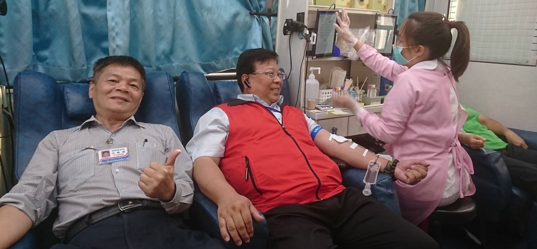 事業部副執行長徐漢(圖右)、高雄廠廠長楊進國、政風室主任武漢偉、行政室公關組經理沈勝國(圖左)等主管也愛心不落人後,先後前來捐血。