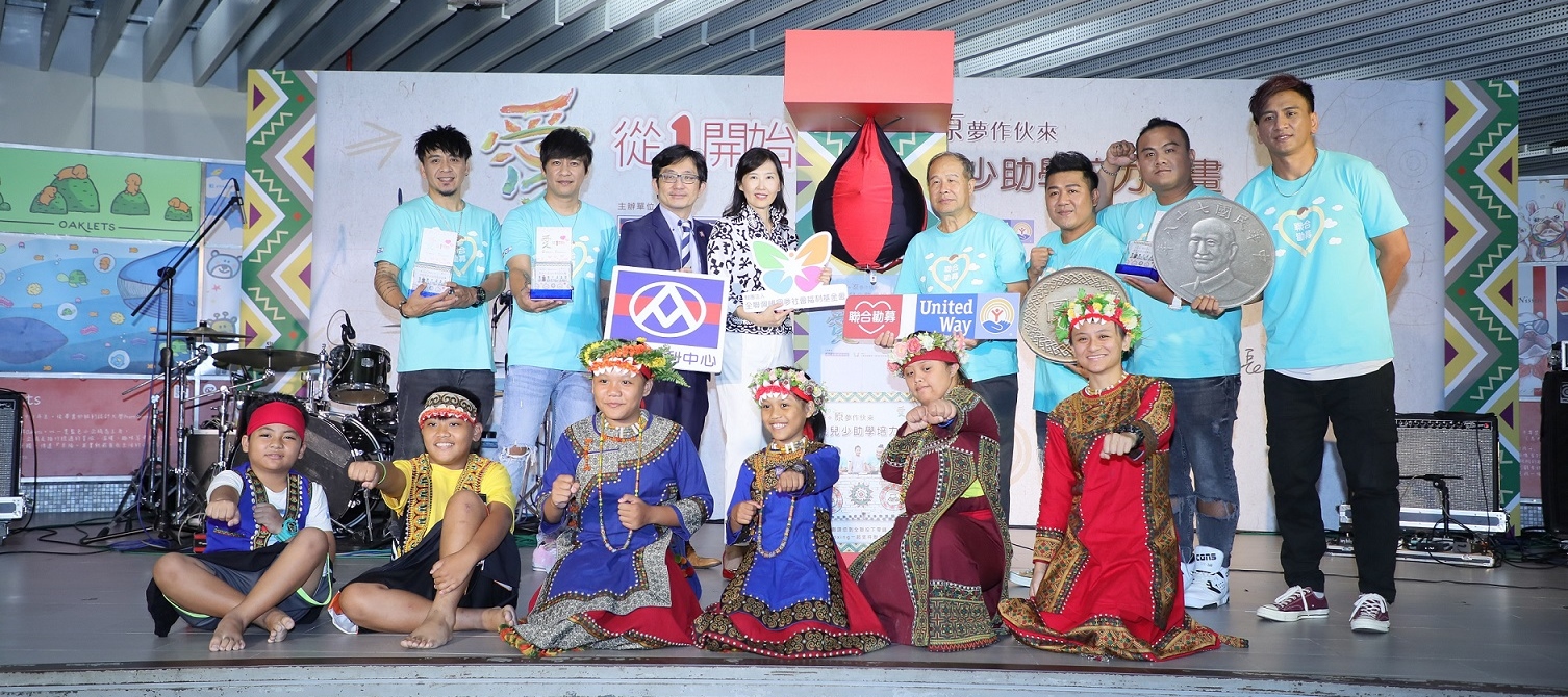 聯合勸募理事長陳永清(右4)表示,原住民孩子常常處在家庭與學校都無法提供有力支持的窘境底下成長,缺乏學習動機造成在學習階段「不學習」的狀態,聯合勸募的服務策略是走進原鄉與家庭及部落建立關係,用最貼近原住民的方式提供支持。