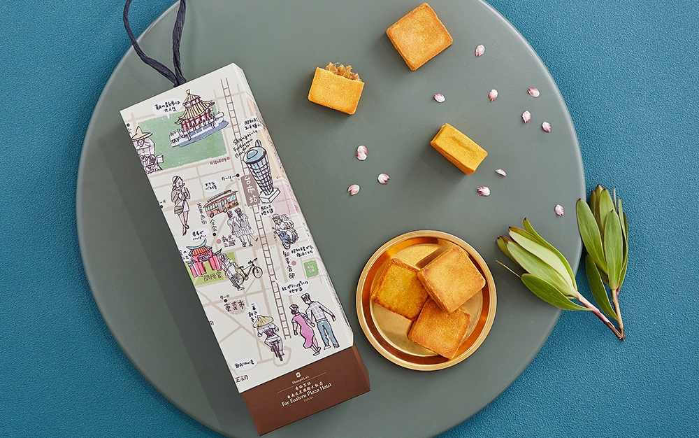 另延續歷年關懷在地兒童,為發展遲緩嬰幼兒及其家人帶來溫馨的中秋佳節所推出的「詠月詩情」水果酥禮盒(如圖),以日本知名插畫家山崎兄妹手繪?台南散步地圖禮盒?,內含柴燒燻香「桂圓酥」與講求工序的「鳳梨酥」,兩種口味各五顆,每盒十入698元。