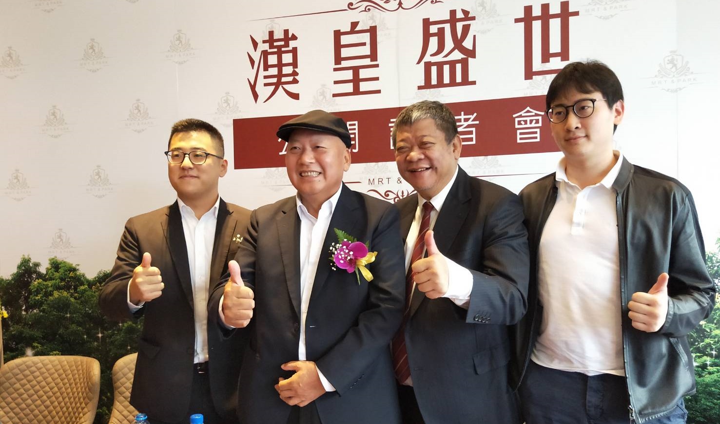圖片說明:漢皇集團董事長孫正乾(左2)與兒子孫鼎翔(左1),與代銷的甲山林董事長祝文宇(右2)及兒子祝藝(右1)共同出席建案公開記者會。