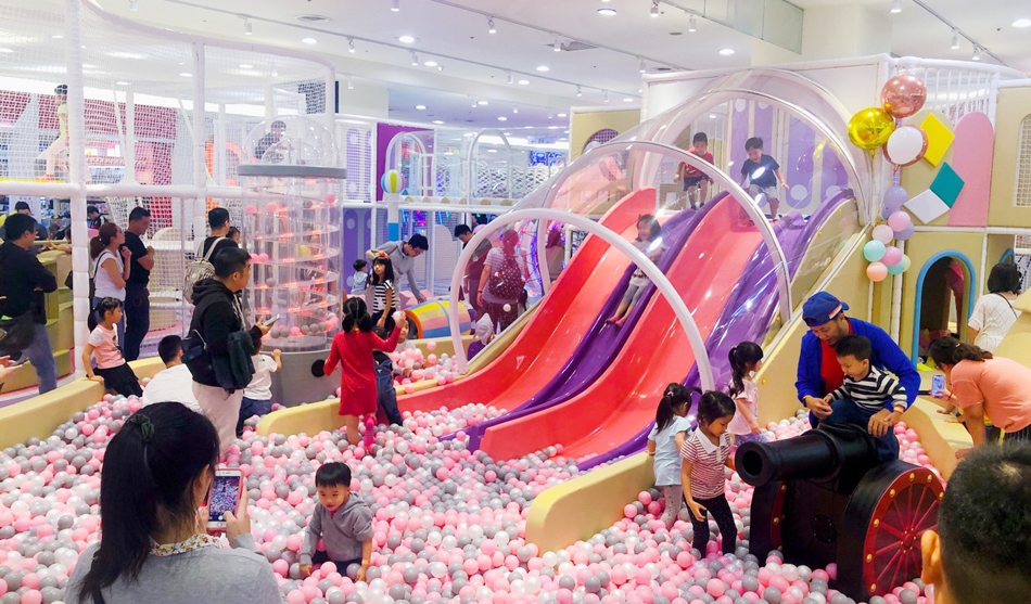 全新的「建築樂園-夢想城體驗館」共有七大主題區,最吸睛的為充滿夢幻色的「星夢球池」,粉灰白三色夢幻球,搭配粉紫色四道滑梯,就像置身在花海當中,同時還有充滿樂趣的樂球塔及球池砲台,無論是將球發射到塔的頂端,再沿著軌道旋轉而下,或是將球裝入砲台射擊而出,多元玩法,讓小朋友百玩不膩。