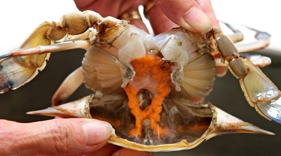 萬里蟹肉質鮮甜可口,但是很多人對於萬里蟹怎麼吃可能感到綁手綁腳,漁村媽媽先教你開殼四撇步,讓你吃蟹不煩惱,第一步將萬里蟹可移動的腹甲去掉,可以發現背甲與腹甲間有縫隙。
