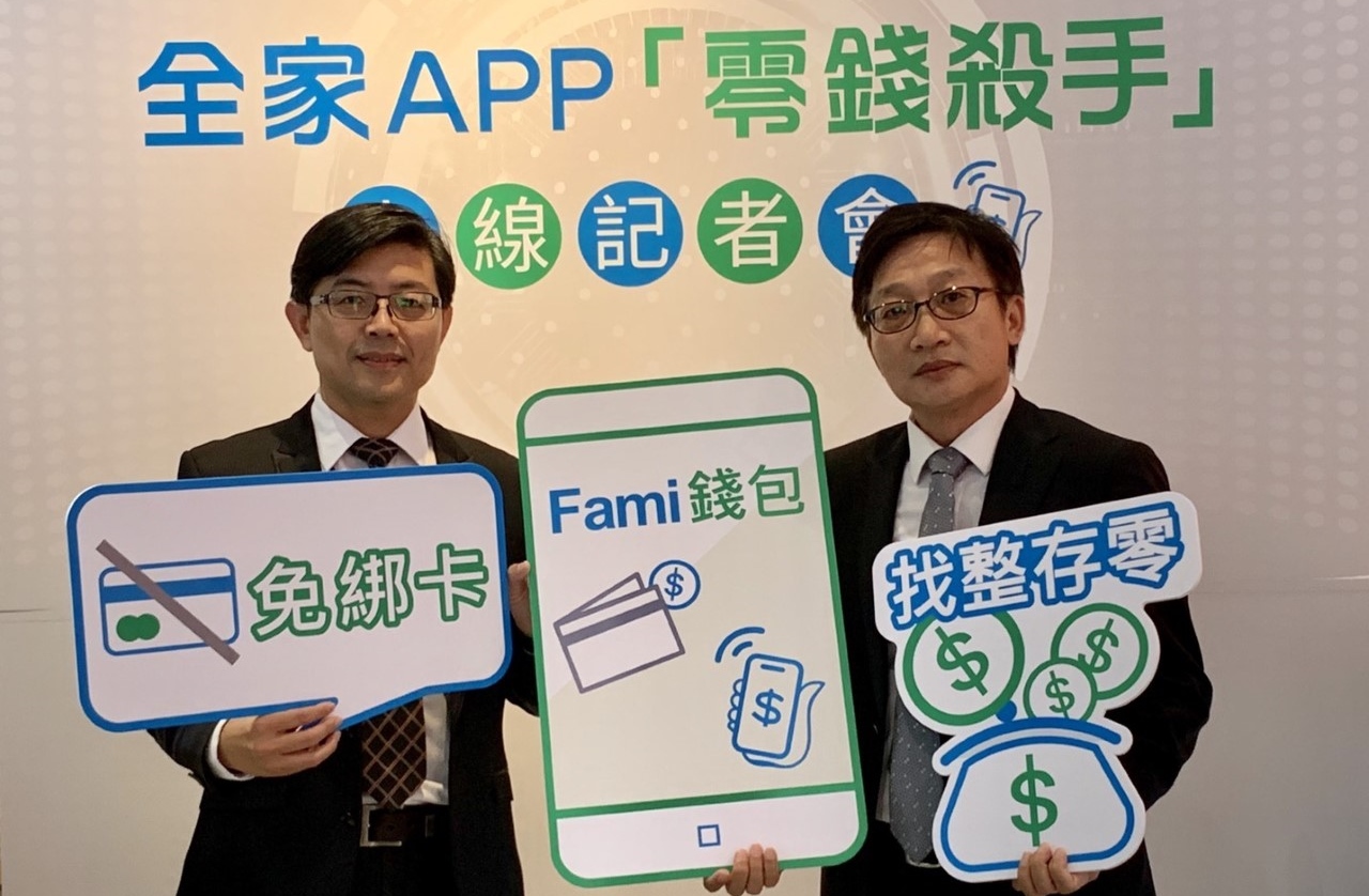 圖片說明:全家ER事業部部長王啟丞(圖左)及ER事業本部本部長簡維國,共同宣傳Fami錢包。