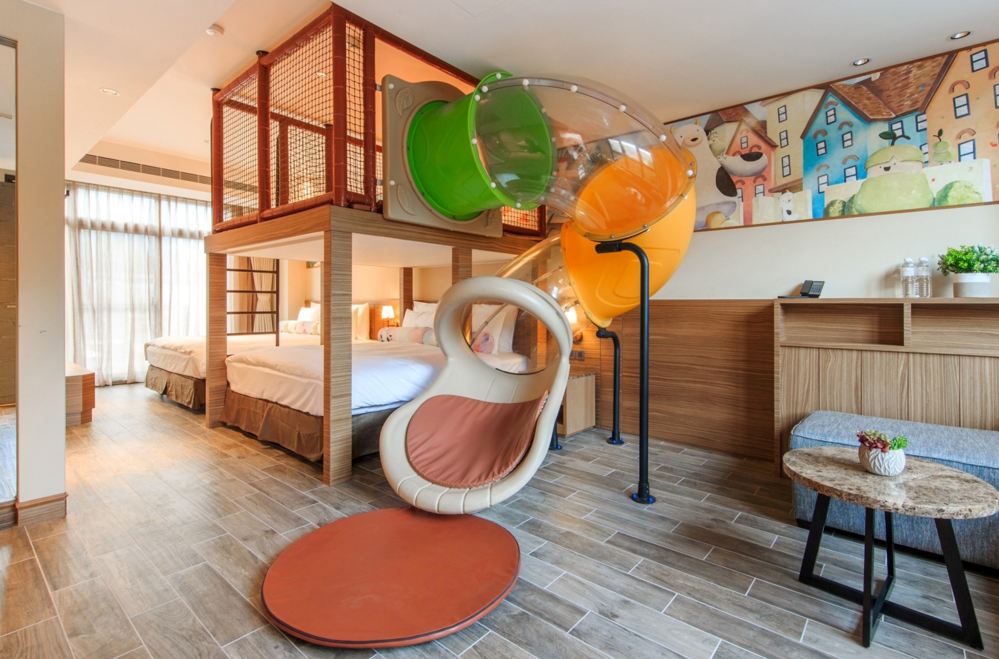 館內提供多元免費設施包括室內游泳池、健身房、電競室、跑跑甩尾車等,還有適合小朋友的兒童超跑俱樂部、小旅人樂園、童趣屋,讓旅客玩到不想離開。