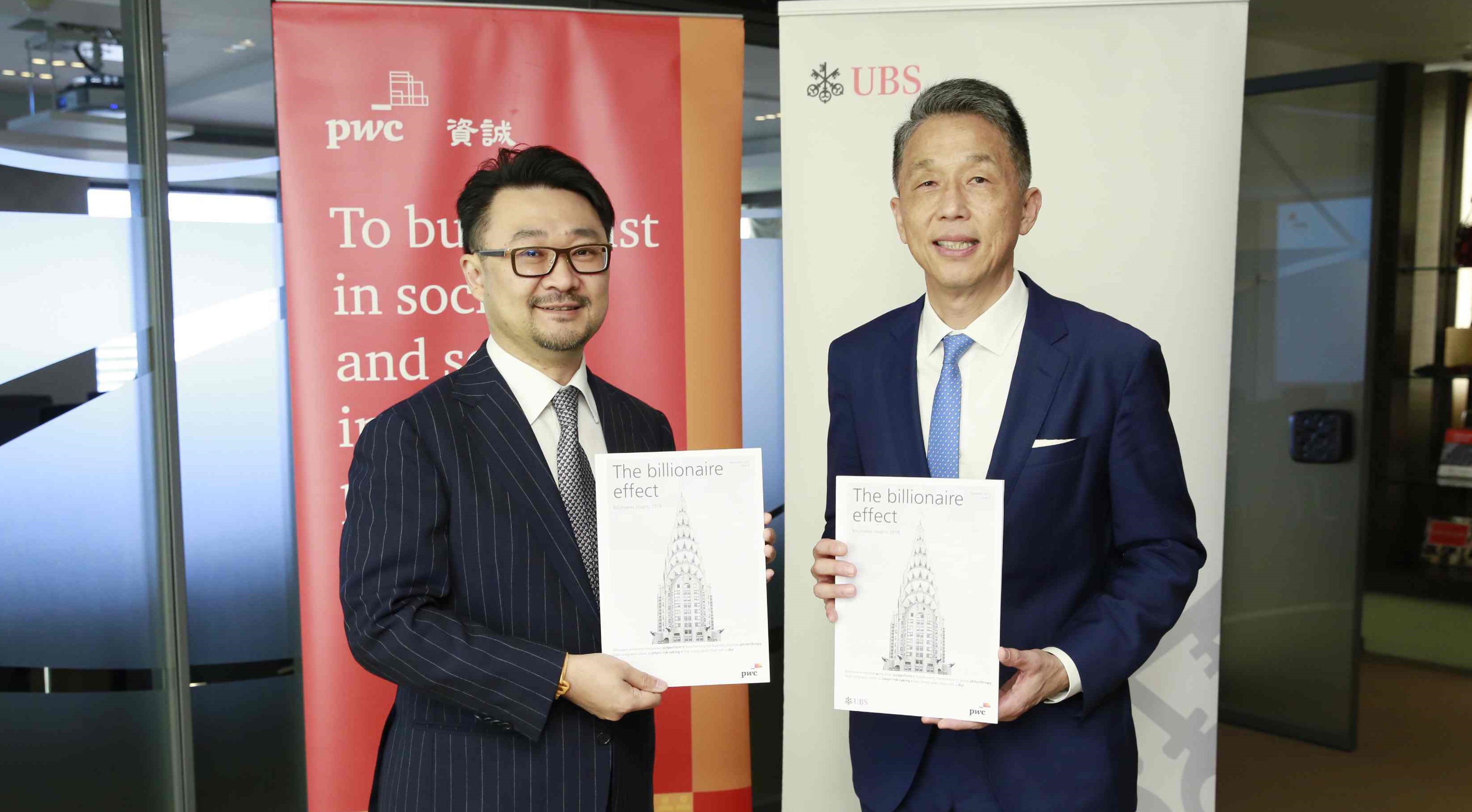 圖片說明:瑞銀集團台灣區總經理陳允懋(圖右)與資誠聯合會計師事務所金融產業服務營運長吳偉臺共同發佈2019瑞銀資誠億萬富豪調查報告《億萬富豪效應》。