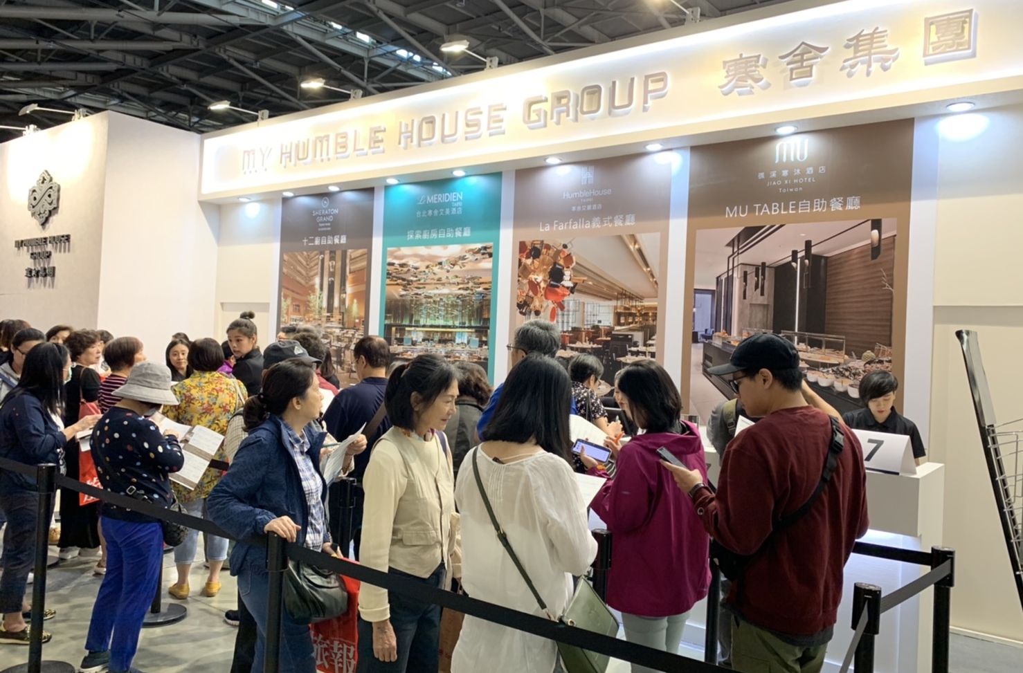寒舍集團今年由台北喜來登大飯店、台北寒舍艾美酒店、寒舍艾麗酒店及礁溪寒沐酒店聯袂參展,推出30款獨家優惠商品,餐券下殺57折、住宿券27折起。
