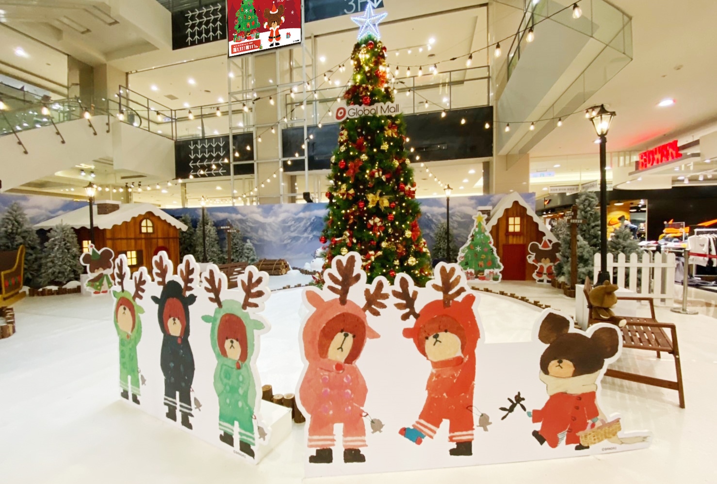 Global Mall新北中和「小熊學校聖誕小鎮」打造了五大場景,有聖誕樹、森林小木屋、麋鹿雪橇、療癒雪人以及聖誕市集。