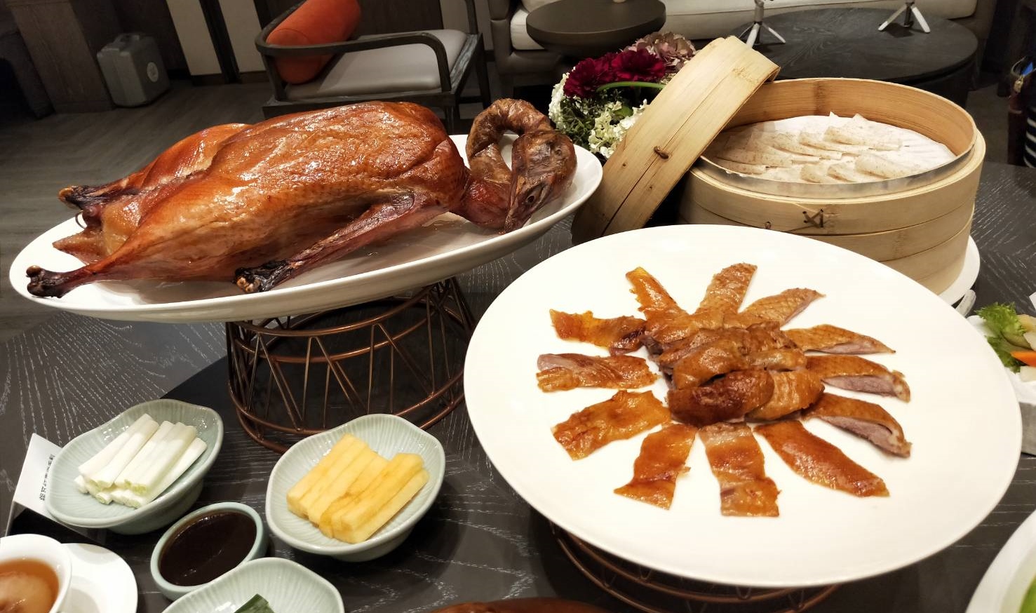 台北新板希爾頓大飯店指出,「窯烤嫣紅片皮鵝」為青雅中餐廳當家明星料理,有多種吃法可供選擇,選用台灣在地飼養足5公斤肥鵝,以獨門配方和多道工法燒製而成。