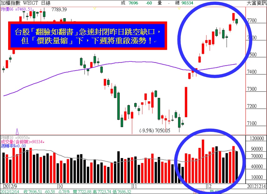 目前明顯可以看得出來,由於台股仍持續受到歐美股市走勢轉折的陰影籠罩,以及市場投資心理不確定因素的影響,預估在下一次直取7789點的波段漲勢發動以前,大盤都還是有可能見到以黑K棒作收的短線回檔走勢格局。