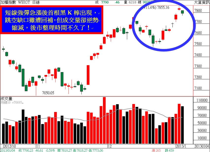 在歐美股市昨日收盤同步見到黑盤跌勢,加上日、韓等亞股市場今日早盤也跟進開盤跳空漲跌走勢表現不一的情況,因而拖累台股今天早盤跟著見到跳空下跌18.5點跌勢開出,市場多方明顯在昨日創下本波反彈漲勢以來的波段漲升高點-7855點後,暫時休兵,以蘊釀下一次波段漲勢的後續漲升動能,才有機會將台股大盤持續往上推升越過去年三月的前波漲勢上檔反壓關卡-8170點邁進。然而如果就盤面整體成交量能的水位高低情況來看,目前仍為持續有量的格局型態,代表著盤面的交投氣氛依舊十分熱絡,有助於大盤後市漲勢的延續。