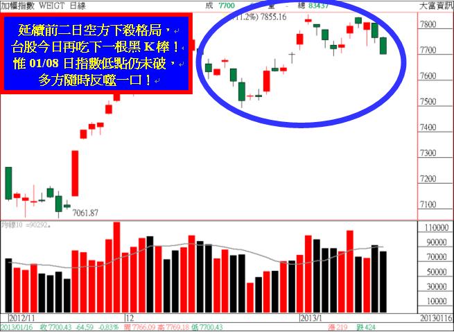 因此,預料台股短線後市的指數來回漲跌走勢,將會持續受制於前波01/03(日)盤中高點-7855點的短線反壓力道,而再度見到位於7650~7850點之間的橫盤整理、區間來回的走勢型態,不太可能會見到太大幅度的下跌修正走勢。也就是說,極有可能後續這一段直到農曆封關日前的交易時間內,大盤指數將會因為盤面占權值比重大的權值個股,繼續維持在一定股價區間內小幅來回漲跌的穩定走勢型態,而跟著見到「橫盤整理」格局,預料將不會有太大的指數震幅出現。
