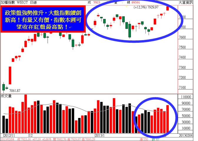 在今日見到一開盤即由金融類股領頭大漲的戲碼下,明顯可以看得出來是一個相當清楚的「政府盤」,畢竟,在新任「江閣揆」即將走馬上任下,台股市場必須要先見到所謂的「慶祝行情」,來突顯一下俗話所說的「新人新氣象」,預先給予一個「好彩頭」,才能在接下來的執政歲月之中,延續今日台股的亮麗漲勢、讓全體股民皆「有感」的「紅盤效應」,也才有機會可以「照拂、護持」執政團隊,在未來一段時間的施政表現能夠如同「倒吃甘蔗」一般漸入佳境,真正做到「施政讓人民有感」的政治承諾。