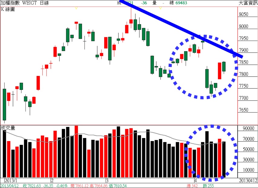 由於歐美股市昨日收盤再度見到同步以紅盤作收格局,加上日、韓等亞股市場今日早盤,也依舊見到雙雙跳空上漲的亮眼開盤走勢,因而順利激勵台股今天早盤一開盤就跟進往上小幅跳空上漲3.1點,市場多方延續昨日的急拉強彈漲升氣勢,力圖一鼓作氣、乘勝追擊,順勢將大盤指數持續往上推升上漲,直接站回台股上檔的下一道整數反壓關卡-7800點整數大關。
