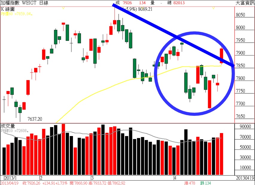 昨日美國經濟數字不如預期,昨日美國財報也是亮點少,不如預期多,無論在金融或在科技都是。IBM、 GOOGLE、NOKIA都是不如預期、而蘋果財報尚未公佈,就已出現回測賈伯斯防線。唯一異軍突起的就是台積電的ADR,大漲5%以上。對應到台股就很明顯,大盤近日能有守,台積電雖不算強,但一直有守,功不可莫,也因台積有守,這兩週我也強調短線多頭還有時間。