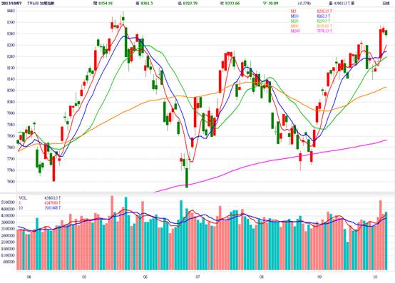 台股今日走勢並未如美國上周末收盤行情一樣強勁,今日早盤就受到美國期貨電子盤影響,呈現開低走低走勢,盤中期貨低點8296點,下跌70點,現貨低點則為8323點,下挫42點。台股近日的弱勢,似乎反映了大戶追價上的力道有點弱,前二日國內政局馬總統與王院長之間的官司,出現好轉跡象,配合美國股市週五收漲,今天台股理所應當要開高走高才是,但為何台股沒有開高,卻還呈現開平走低走勢,今天的盤勢值得投資人深思。