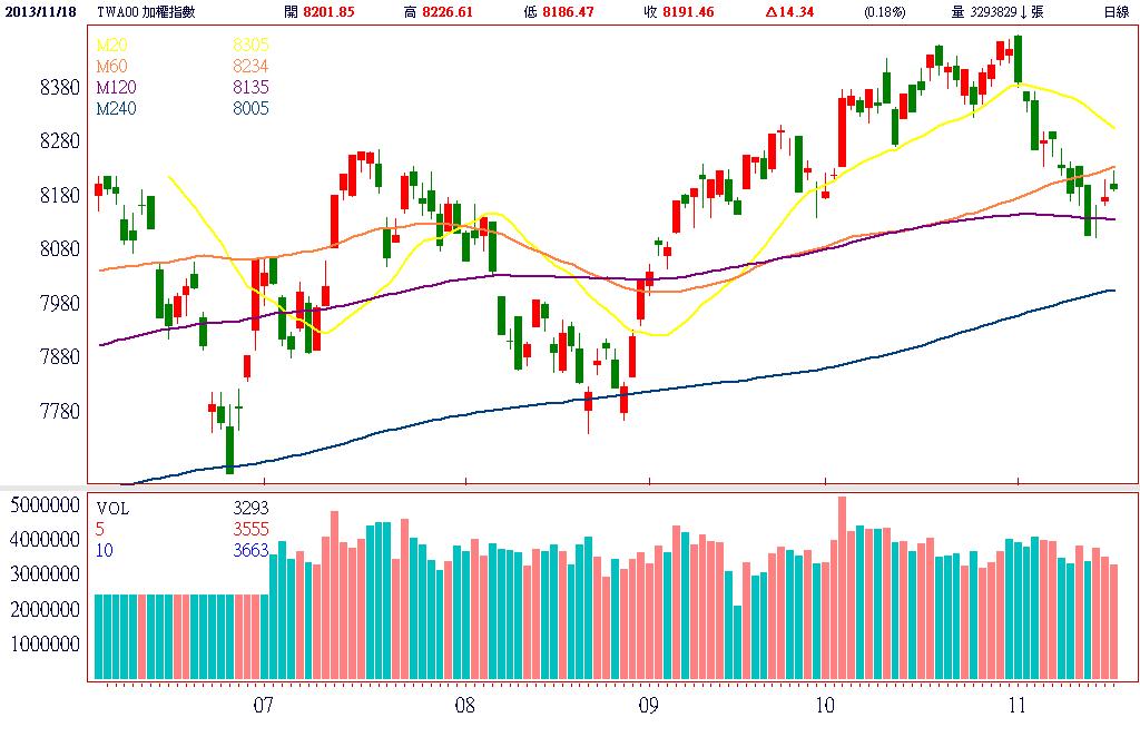 受美股續創新高激勵,今日亞股均同步開漲慶賀,可惜台股在面板股又大跌走弱及量能無法有效放大的影響下,不僅多頭明顯縮手觀望,且再度引發調節性賣壓出籠,造成指數漲幅一路收斂,終場加權指數以8191.46點作收,上漲14.34點,漲幅0.18%,市場成交總金額為655.95億元。