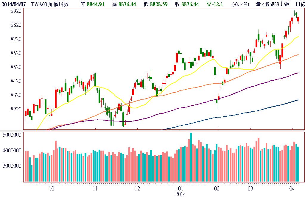 考量目前加權指數日KD已來到相對高檔、美股也開始出現大幅的修正,增添台股反轉向下的機會。但以目前台股僅千億元的成交量,外資想落跑也跑不太掉,倒是可能會利用本周學運落幕,股市上演慶祝行情時趁勢落跑,故當日成交量放大到1300億元之上時就要警訊。反觀,尚未突破前高的櫃買指數,因技術指標剛翻正,在反彈過程中,也呈現價漲量增的健康走勢,是比較有機會在本周走出自己的路。