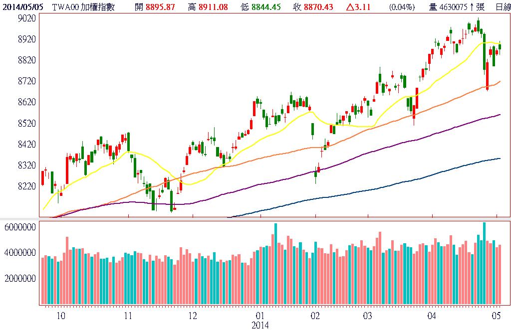 考量外資未來將有轉賣台股的可能,先前外資積極買超、股價漲幅較大的個股將有被調節的風險,加上目前傳出蘋果六月的開發者大會將不會發表新硬體(iPhone、iWatch),甚至iPhone 6還會延後上市,恐將引發市場對蘋概股的失望性賣壓,故現階段選股最好還是以傳產股為主,像是有霜淇淋題材的超商雙雄(及上游的南僑(1702))、安全法規上路的汽車零組件廠及資金壓寶的新藥生技族群,均是投資人可以留意的方向。